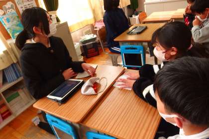1月13日の東広瀬小学校(25) 公開日 2023/01/15 更新日 2023/01/15 活動の様子 キャリア学習で学んだこと、調べたことをまとめた6年生が、その内容をタブレットを使いながら4年生に発表しました。