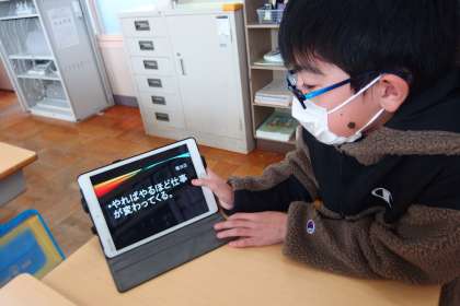 1月13日の東広瀬小学校(35) 公開日 2023/01/15 更新日 2023/01/15 活動の様子 キャリア学習で学んだこと、調べたことをまとめた6年生が、その内容をタブレットを使いながら4年生に発表しました。
