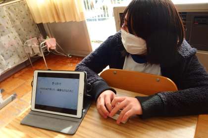 キャリア学習で学んだこと、調べたことをまとめた6年生が、その内容をタブレットを使いながら4年生に発表しました。