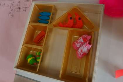 1月13日の東広瀬小学校(53) 公開日 2023/01/15 更新日 2023/01/15 活動の様子 5年生の家庭科の授業です。 調理実習がなかなか実施できない状況なので、代わりに粘土を使っておせち料理を作ってみました。 本物がイメージしづらい具材は、タブレットで調べながら進めていました。