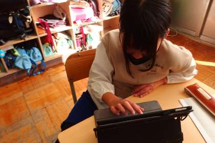 アップしていなかった写真をまとめて更新します。 プログラミングの授業を行う6年生です。