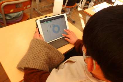 わかばタイムにデジタルドリル(Qubena)に取り組む5年生です。