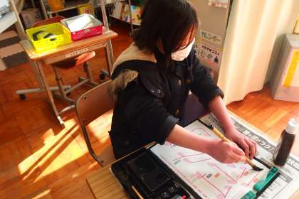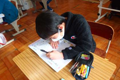 アップしていなかった写真をまとめて更新します。 特別支援学級の書写の授業です。