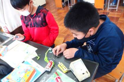 1月第3週を振り返る 公開日 2023/01/23 更新日 2023/01/23 活動の様子 アップしていなかった写真をまとめて更新します。 5年生の理科の授業です。 電池、スイッチ、銅線、電流計などをつなぎ、電磁石の実験をしていました。 どのようにつなげば電磁石になり、どのように工夫すれば電磁石が強くなるのかを考えることは、プログラミング的思考に通ずるものがありますね。
