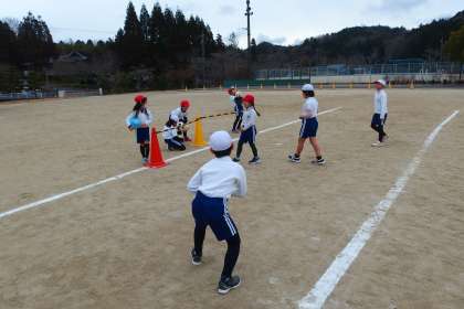 2年生の体育の授業です。 サッカーを学習中です。