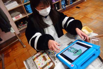 タブレットを使って形や色を調べながら、ハンコを作っていました。