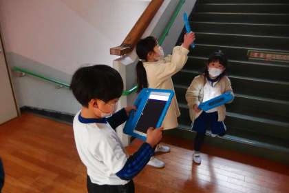1月30日の東広瀬小学校(15) 公開日 2023/02/01 更新日 2023/02/01 活動の様子 1年生の算数の授業です。 教室内、校舎内で「数字」を見つけて、タブレットで撮影しているところです。