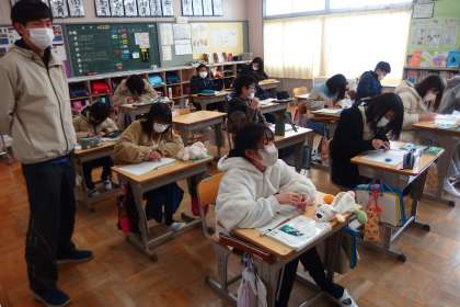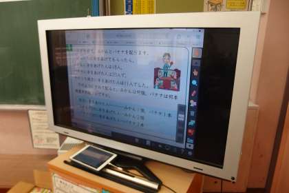 6年生の算数の授業です。 先生がタブレットからにスクリーンに映し出した問題を解いていました。