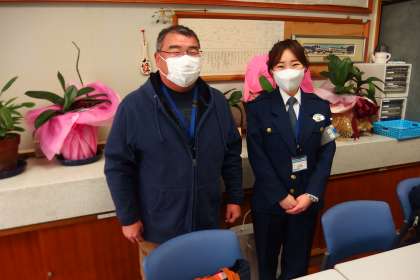 写真は、今回の避難訓練のために来校していただいた豊田警察署の方々です。