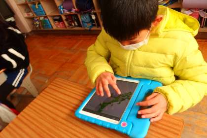 タブレットのアプリで学習した内容の定着を図っています。