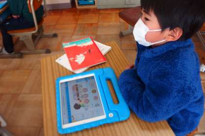 タブレットの発表ノートを上手に使って「お金」の学習を効率的に進めていました。