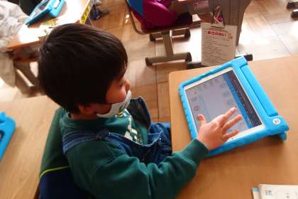 タブレットの発表ノートを上手に使って「お金」の学習を効率的に進めていました。