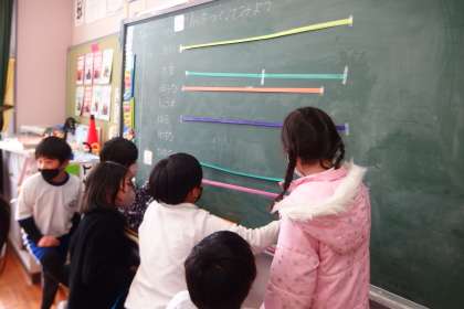 2月第1週を振り返る 公開日 2023/02/04 更新日 2023/02/04 活動の様子 2年生の算数の授業です。 紙テープを使って「長さ」を学習しています。 このような実際のものを体験して進める授業は、タブレットでは再現できない類のものです。