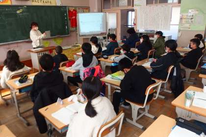 社会の授業では、デジタル教科書の資料や図、写真がスクリーンに映し出されていることが多いですね。