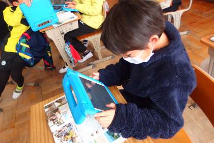 都道府県の学習の中で、宮城県の名勝地松島のことをタブレットで調べているところです。