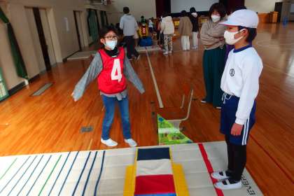 4年生が体育の授業で取り組んできた JUMP UP TRAINING の成果を、5年生と6年生に伝達する活動を行いました。