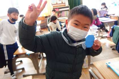 2月第1週を振り返る 公開日 2023/02/06 更新日 2023/02/06 特別活動 メダルをもらって喜んでいる1年生。 換気がしっかりできた学級ということで、保健給食委員から表彰してもらいました。