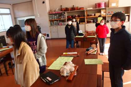 授業ではピアノ伴奏で歌い、教室ではブレットから流して歌い、場所に応じて工夫して練習を進めています。