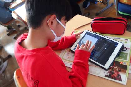 2月6日の東広瀬小学校(26) 公開日 2023/02/07 更新日 2023/02/07 活動の様子 5年生の英語の授業です。 日本の伝統なことについての3ヒントクイズを考え、タブレットに問題を書き込んでいるところです。