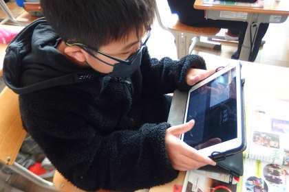 2月6日の東広瀬小学校(27) 公開日 2023/02/07 更新日 2023/02/07 活動の様子 5年生の英語の授業です。 日本の伝統なことについての3ヒントクイズを考え、タブレットに問題を書き込んでいるところです。
