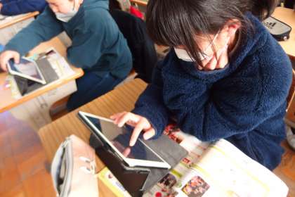 2月6日の東広瀬小学校(28) 公開日 2023/02/07 更新日 2023/02/07 活動の様子 5年生の英語の授業です。 日本の伝統なことについての3ヒントクイズを考え、タブレットに問題を書き込んでいるところです。