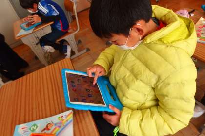 2月6日の東広瀬小学校(38) 公開日 2023/02/07 更新日 2023/02/07 活動の様子 4年生の外国語活動の時間です。 タブレットのアプリを使ってアルファベットの小文字を復習しているところです。