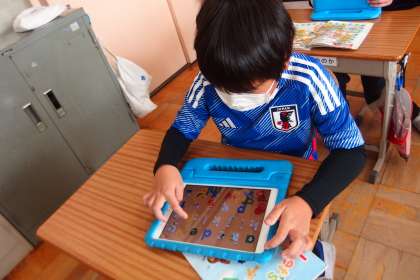 2月6日の東広瀬小学校(41) 公開日 2023/02/07 更新日 2023/02/07 活動の様子 4年生の外国語活動の時間です。 タブレットのアプリを使ってアルファベットの小文字を復習しているところです。