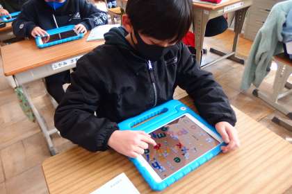 2月6日の東広瀬小学校(44) 公開日 2023/02/07 更新日 2023/02/07 活動の様子 4年生の外国語活動の時間です。 タブレットのアプリを使ってアルファベットの小文字を復習しているところです。