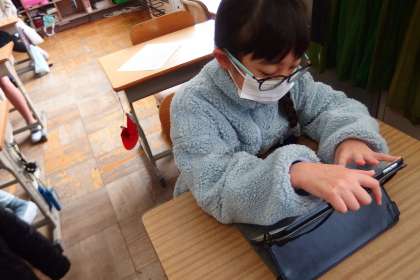 タブレットを使って復習をしている5年生です。
