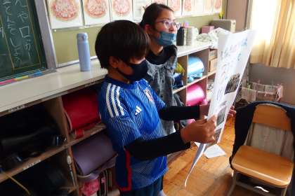 学習発表会の準備、練習を進めている4年生です。