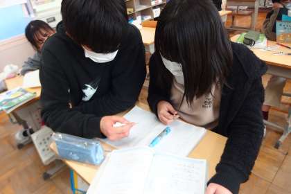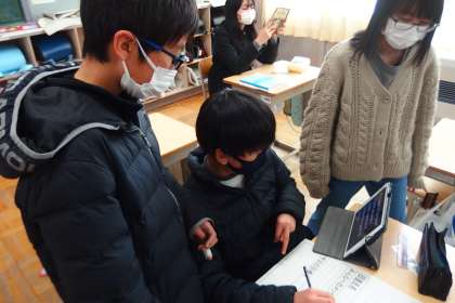 6年生の算数の授業です。 教え合い、学び合いで学習が進んでいました。