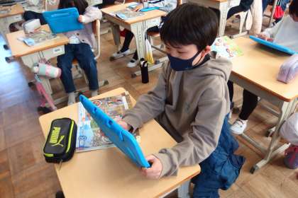 2月9日の東広瀬小学校(31) 公開日 2023/02/12 更新日 2023/02/12 活動の様子 3年生の外国語活動の授業です。 「これなあに」をテーマに英会話をするために、タブレットを使ってネタ探しをしている3年生です。