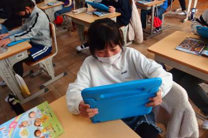 2月9日の東広瀬小学校(33) 公開日 2023/02/12 更新日 2023/02/12 活動の様子 3年生の外国語活動の授業です。 「これなあに」をテーマに英会話をするために、タブレットを使ってネタ探しをしている3年生です。