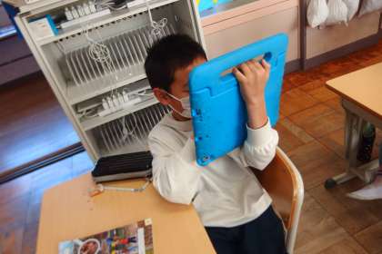 2月9日の東広瀬小学校(35) 公開日 2023/02/12 更新日 2023/02/12 活動の様子 3年生の外国語活動の授業です。 「これなあに」をテーマに英会話をするために、タブレットを使ってネタ探しをしている3年生です。