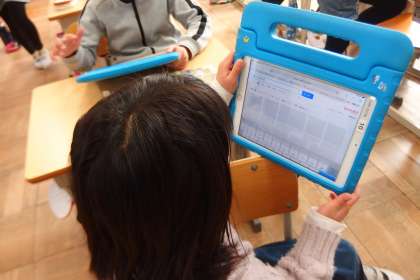 2月9日の東広瀬小学校(36) 公開日 2023/02/12 更新日 2023/02/12 活動の様子 3年生の外国語活動の授業です。 「これなあに」をテーマに英会話をするために、タブレットを使ってネタ探しをしている3年生です。