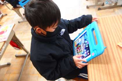 タブレットのアプリで復習をしている4年生です。