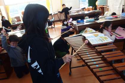 2年生の音楽の授業です。 合奏に木琴を取り入れ始めました。