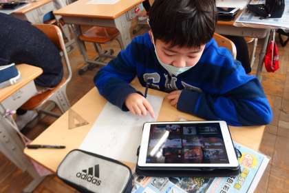キャリア学習のまとめを、タブレットで調べたりしながら進めているところです。