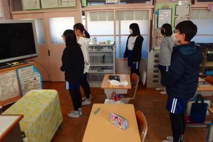 卒業式で歌う曲の練習をしている6年生です。 タブレットからメロディーを流して歌っています。