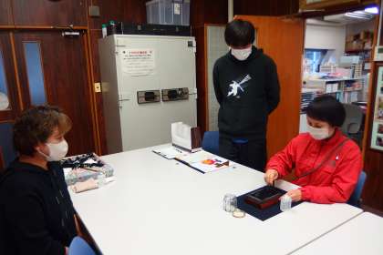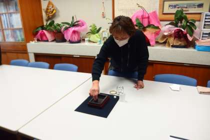 卒業証書を書道の先生に書いていただくにあたり、教職員で心を込めて墨すりをしました。