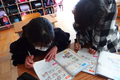 2月27日の東広瀬小学校(5) 公開日 2023/02/28 更新日 2023/02/28 活動の様子 4年生の外国語活動の授業です。 教科書を手に、友だち同士で英会話をしているところです。 学校内の部屋や場所の名前を使った言語活動で、共に高め合う協働的な学びの姿です。