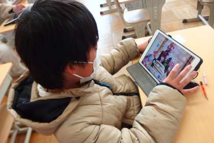 来週火曜日に実施する「中学生から学ぶ会」の準備を、タブレットで確認しながら進めている6年生です。