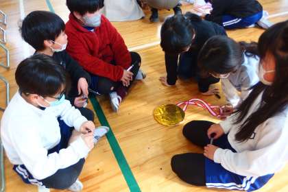 1年生から5年生が体育館に集まって送る会の準備を進めました。