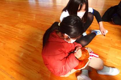 1年生から5年生が体育館に集まって送る会の準備を進めました。