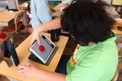 タブレットを使って復習をする5年生です。