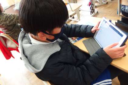 デジタルドリル(Qubena)に取り組む6年生です。