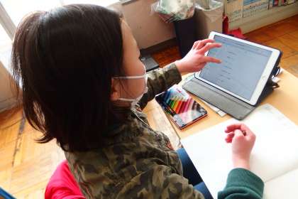 デジタルドリル(Qubena)に取り組む6年生です。