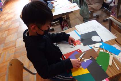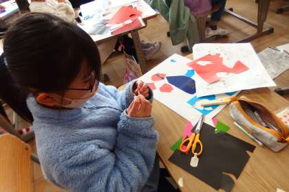 1年間の思い出を振り返り、切り絵をしていました。