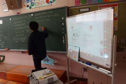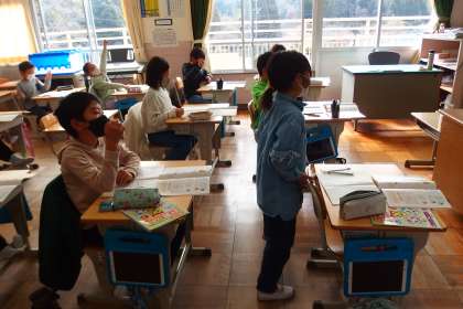 3月2日の東広瀬小学校(20) 公開日 2023/03/04 更新日 2023/03/04 活動の様子 3年生の算数の授業です。 タブレットからデジタル教科書を映し出し、黒板には解法をていねいに記述して、ハイブリッドで進めていました。