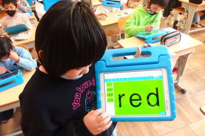3月2日の東広瀬小学校(50) 公開日 2023/03/04 更新日 2023/03/04 活動の様子 3年生の外国語活動の授業です。 What's this? の表現を使った3ヒントクイズを行いました。 友だちや先生に出題しやすいようにタブレットにヒントを書き込みました。